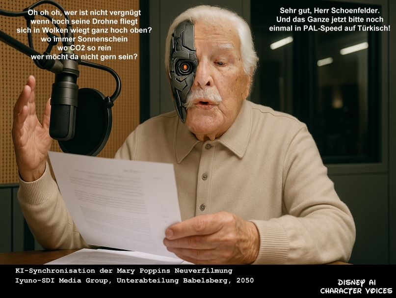 Ich bin einer der wenigen besser gesagt der einzige der das ganze mit KI-Synchro gut findet.Man hat bei fast jeden alten Film/Serie was rausgeschnitten,und da gibt es bis jetzt nur zwei möglichkeiten entweder dt.UT oder eine neue Syncho für die Szenen,man ist sogar so weit gegangen das man gleich den ganzen Film neu eingesprochen hat wie zb (Spuren im Sand/John Wayne).Aber die meisten Filme und Serien sind nur mit dt.UT versehen wenn überhaupt,oder man entfernte die Szenen,bestes Beispiel sind die TV Sendeanstalten.Ich will die alten Sprecher im ganzen Film hören und das geht nicht anders.Gleichvorweg neue Filme schaue ich nicht so,dort würden auch die alten Haudegen aus der guten alten Zeit meine Sprechergötter nicht passen,obwohl Wolfgang Hess und Thomas Danneberg könnte man da auch reaktivieren,und leider hat Detlef Bierstedt den Hut drauf gehaut,will nicht mehr sehr schade eine meine Lieblingsstimme aus der Neuzeit.